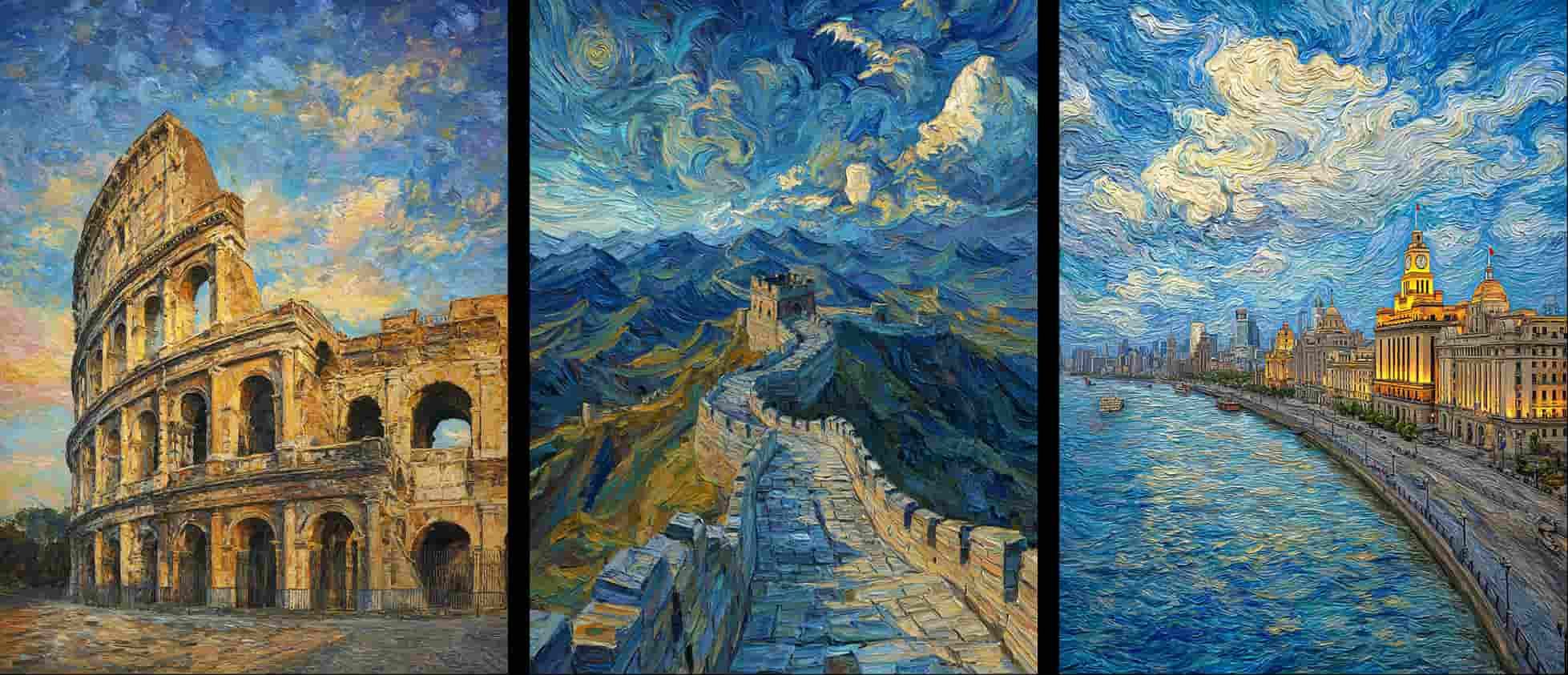 Prompt de Midjourney: Pintura estilo Van Gogh de [LUGAR / MONUMENTO], [BREVE DESCRIPCIÓN DE LA UBICACIÓN O ARQUITECTURA], [PERSPECTIVA/ÁNGULO] dramático, pinceladas gruesas de impasto, cielo expresivo con remolinos, paleta vibrante de azul cobalto y amarillo cromo, obra maestra postimpresionista, textura rica de pintura al óleo, iluminación de hora dorada con reflejos cálidos, 4k, muy detallado --ar 3:4Cuando estés listo para dar el siguiente paso