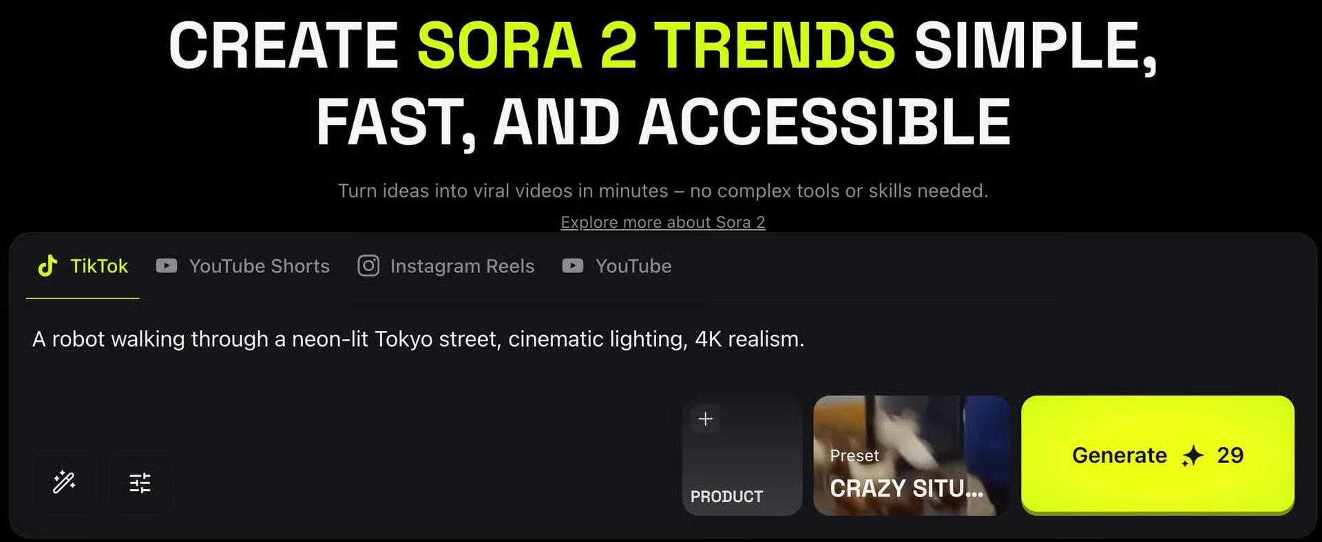 Escribe tu tema o idea, luego pulsa ‘Generate’, ¡y tu vídeo viral estará listo en cuestión de segundos!