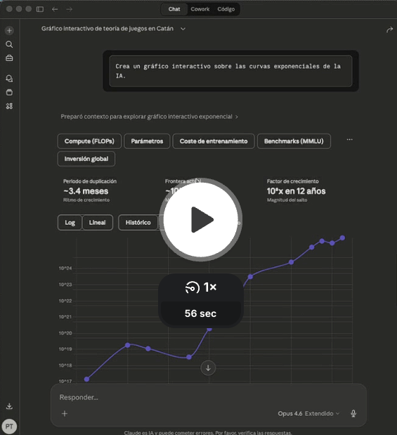 Crea un gráfico interactivo sobre las curvas exponenciales de la IA.💡 Consejo: Puedes pedirle a Claude que primero busque información en profundidad en la web y encuentre consenso. Y después pedirle el gráfico interactivo.