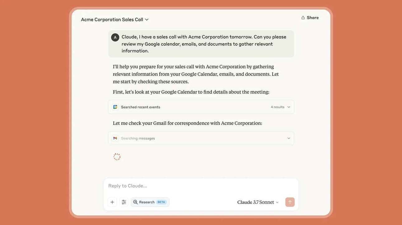 Anthropic ha elevado a Claude de chatbot a asistente de investigación completo. Su nueva función Research le permite buscar en internet y explorar tus archivos privados para entregarte informes detallados con referencias reales.